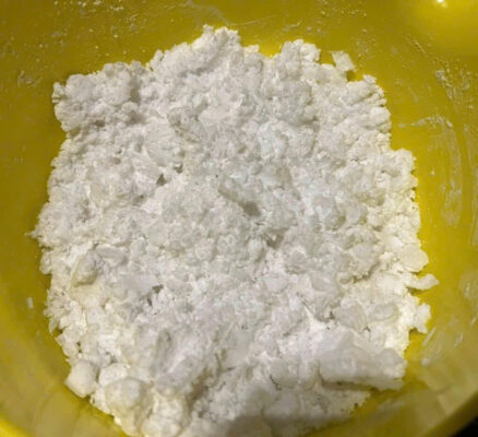 RATIO: – 500gr potato starch – 190ml warm water 60 degrees Celsius water/powder = hydration. 190ml/500gr powder = 38% moisturizing. Amount of flour x 38% = amount of water.