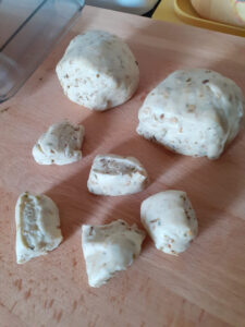 Then cut it into pieces and put it in Philips pasta maker to extrude.